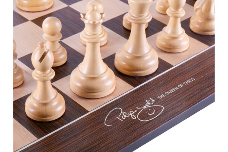Jeu d'Échec Judit Poglar 55 cm comprend de magnifiques pièces d'échecs fait à la main, elles sont fournies dans une belle boîte en noyer. Les pièces sont pesées et il y a deux dames pour chaque couleur. Le bel échiquier porte la signature de Judit Polgar. Il est fabriqué en érable et en Cassia Siamea. Le roi de 9,5 cm convient parfaitement à l'échiquier et constitue la combinaison idéale du jeu d'échecs iconique de Judit Poglar.